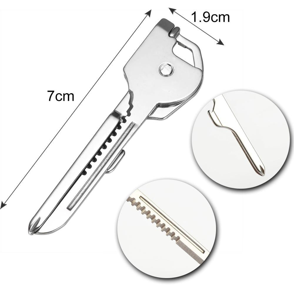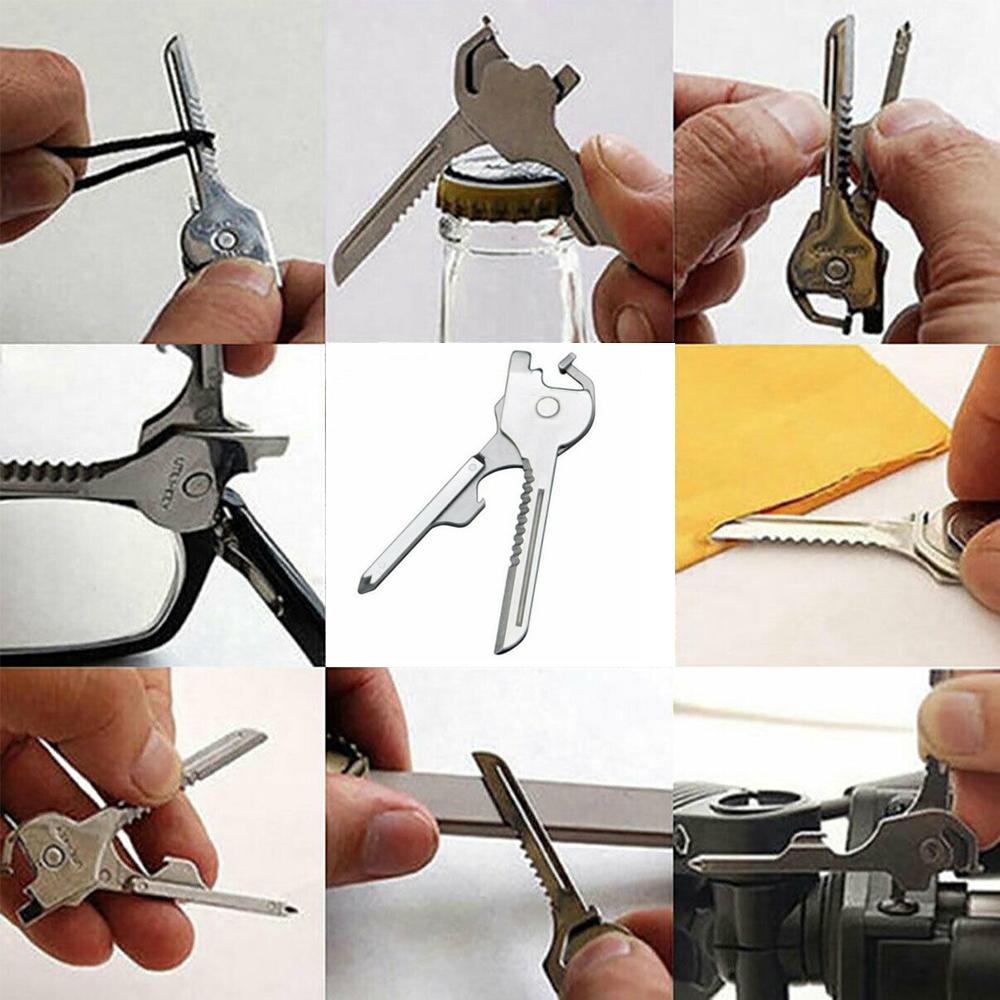Das 6-in-1-Schlüsselringwerkzeug ist ein leichtes selbsthemmendes Werkzeug, das sicher an Ihrem Schlüsselring befestigt wird. Es verfügt über einen flachen Schraubendreher, einen Flaschenöffner, einen Kreuzschlitzschraubendreher, gezahnte und gerade Messerklingen sowie einen Mikro-Brillen-Schraubendreher. Es ist kompakt und bequem zu bedienen.